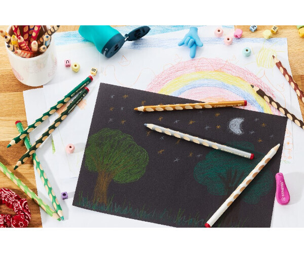 To tu ještě nebylo: Ergonomicky tvarované pastelky pro praváky a leváky. Více zábavy pro malé umělce, více argumentů pro rodiče. STABILO EASYcolors zdatně pokračují v rozšiřování ergonomické řady STABILO.